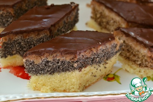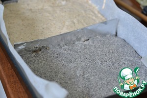 Сверху на маковое и ореховое тесто разлить светлое тесто из первой миски. Стараться сделать одинаковый уровень на двух половинах формы.