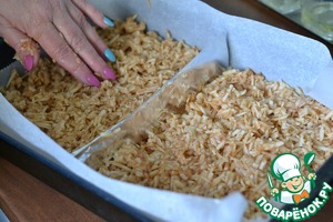 Подготовить форму для выпечки 35х25см. с высокими бортиками.