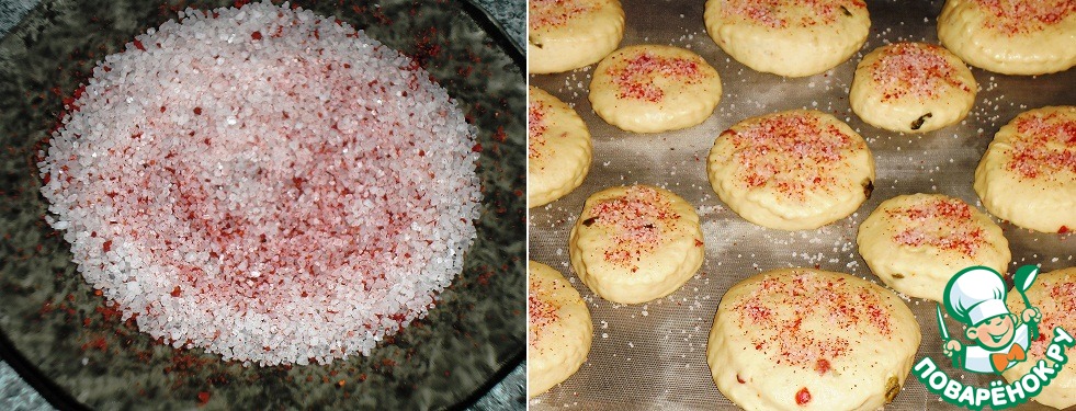 Выкладываем будущие булочки на противень, посыпаем солью с паприкой,