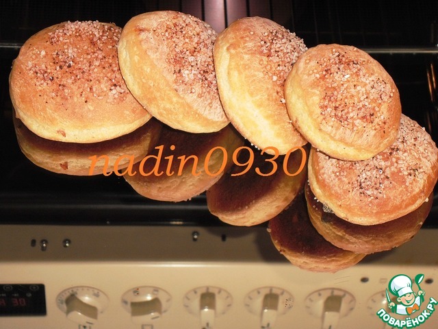 Затем ставим заготовки для булочек в разогретую до 180-200 градусов духовку.