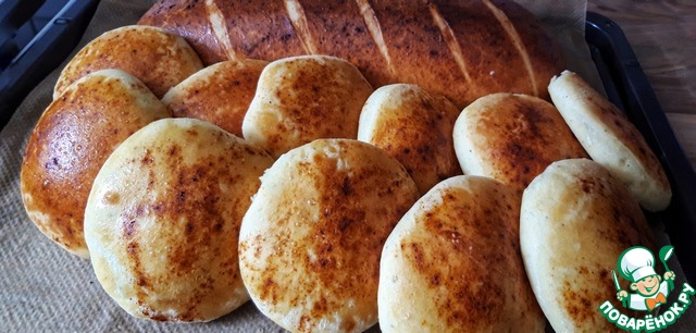 Вынув булочки из духовки, оставьте дверцу открытой, туда же поставьте форму с подошедшим хлебом.