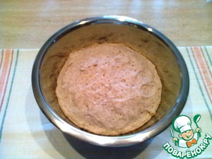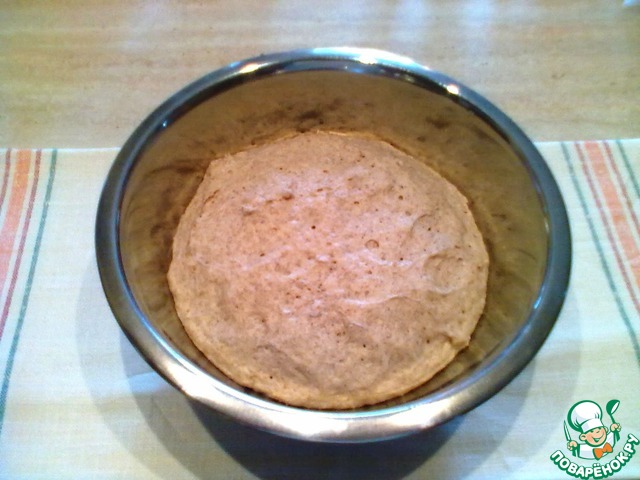 Переложить в миску, затянуть пленкой и убрать в тёплое место на 1,5 часа.
