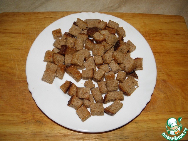 - Хлеб (ржаной, или бородинский, для гренок) — 2 ломт.