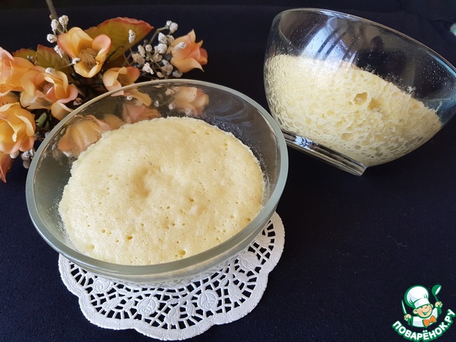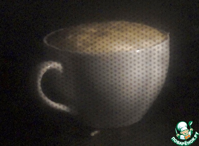 Выпекаем 1 - 1,5 минуты на максимальной мощности в обычных чашках, в зависимости от мощности вашей печи, она у всех разная. Сигнал к тому, что ваш кекс готов: он перестает подниматься, и стекло начинает запотевать.