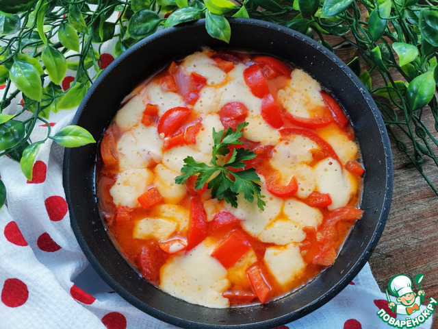 При образовании достаточного количества жидкости выложить сладкий перец.