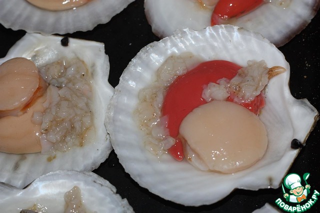 Первым делом надо наловить гребешков. Ну или купить живых гребешков у браконьеров. Ну или хотя бы замороженный в раковинах.