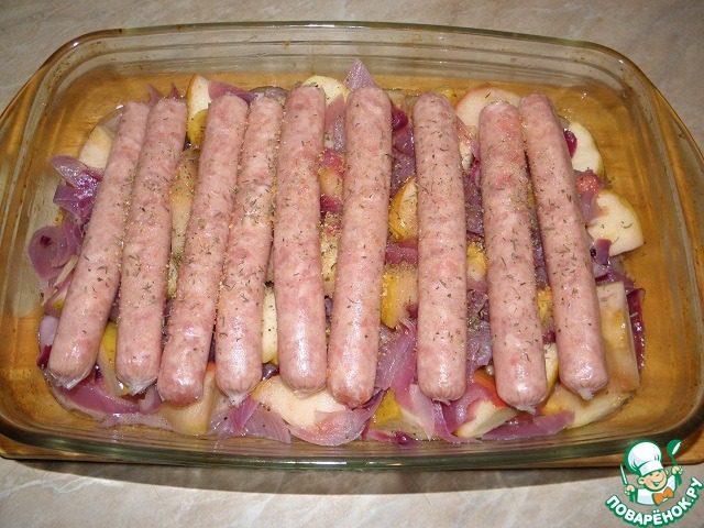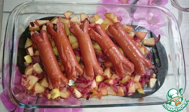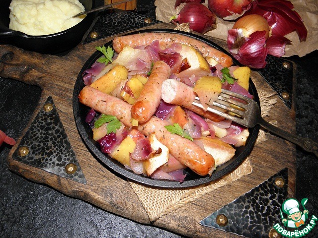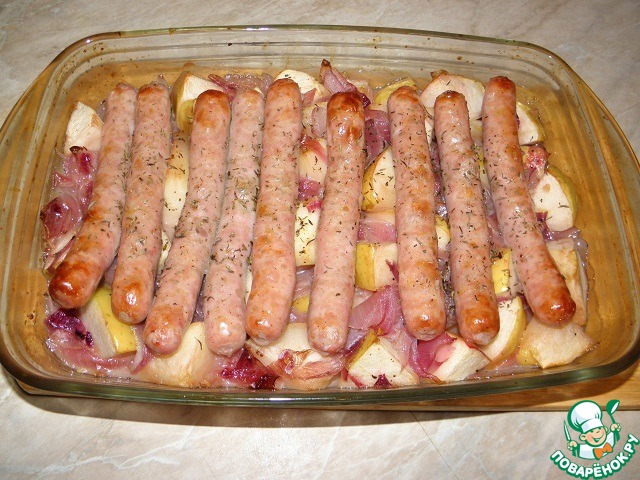 [+4]Правда было лень искать колбаски. Сделал с сосисками и вместо тимьяна добавил корицы. Думаю она больше к яблокам подходит.