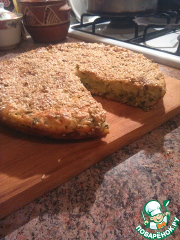 Выложить тесто в форму, разровнять. Посыпать пирог кунжутом. (или маком) -