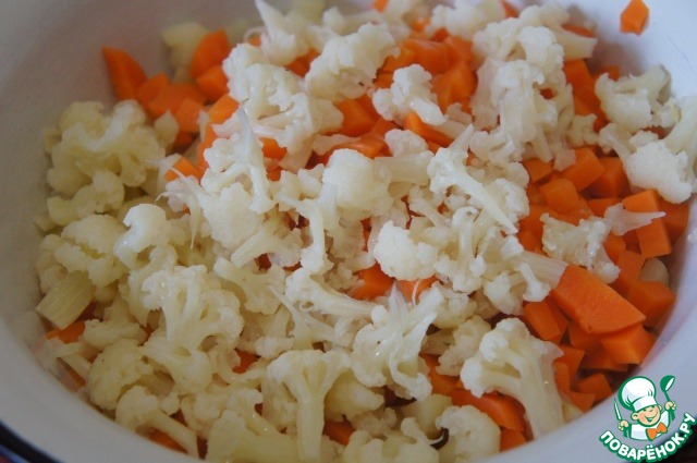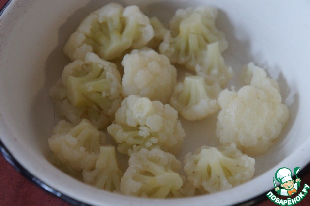 Капусту отварить в подсоленной воде 4 минуты, остудить. Не стоит ее разваривать, она должна остаться немного хрустящей.