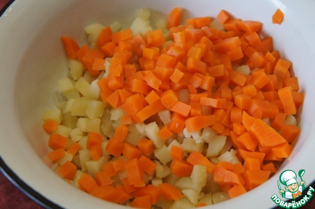 Картофель, морковь, свеклу и яйцо отварить, остудить и очистить.