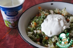 Добавили немного соленых огурчиков и немного майонеза и салат преобразился.
