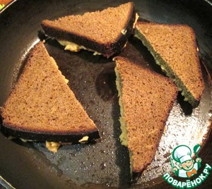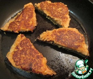 Обжарить пюре до зажаристой корочки. Перевернуть бутерброды прямо рукой на обратную сторону, и ещё поджарить слегка сам хлебушек.