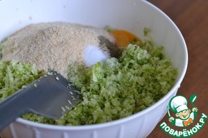 Добавить к фаршу капусту, панировочные сухари, яйцо, соль и перец. -