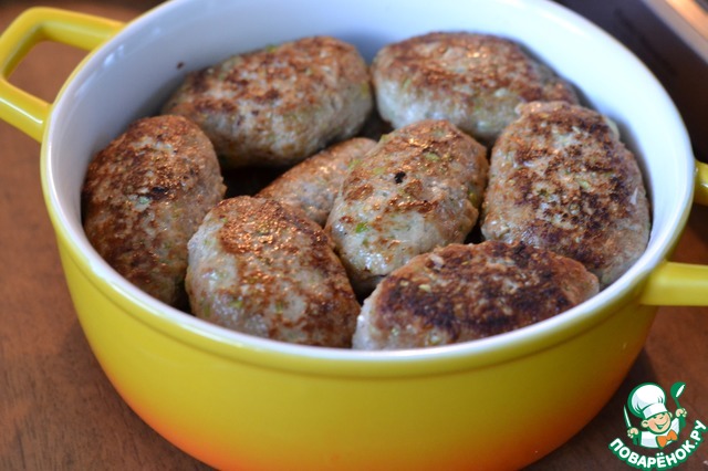 Обжаренные котлеты выкладываем в кастрюлю или сотейник.