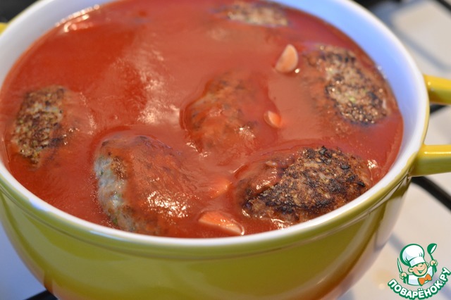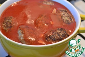 Залить котлеты соусом так, чтобы они полностью были покрыты. Если надо, то долить воды.