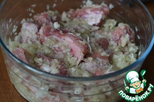 Добавить к луковому пюре ребрышки, Посолить и поперчить.