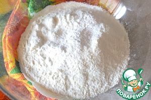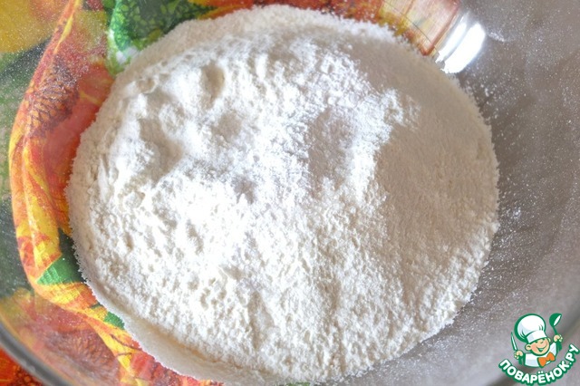 В емкость просеиваем муку, добавляем ванильный сахар и разрыхлитель.