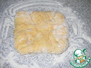 Хорошо вымесить тесто, присыпать сверху мукой и накрыть полотенцем.