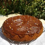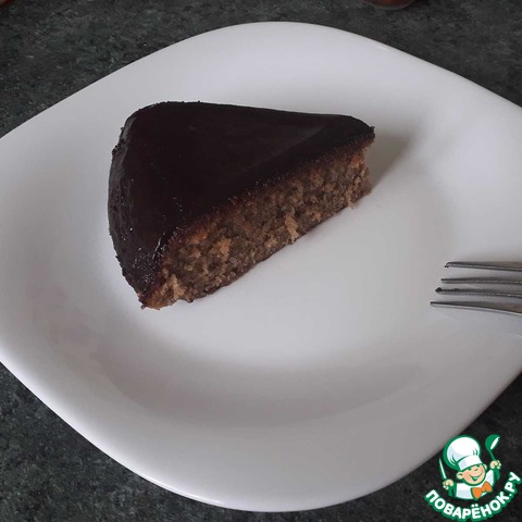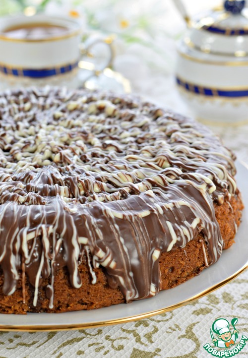 Украсить пирог по вашему желанию. Можно посыпать сахарной пудрой или тертым шоколадом, полить сахарной глазурью или сиропом. Я украсила пирог двухцветной шоколадной глазурью, уже готовой, из пакетика.