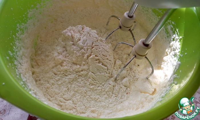 Если используете разрыхлитель, то нужно заранее смешать его с мукой. -