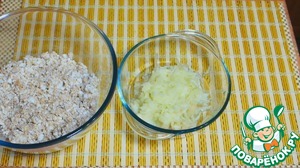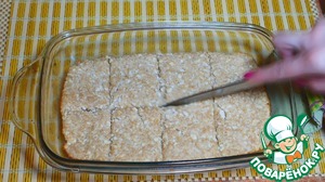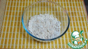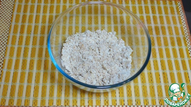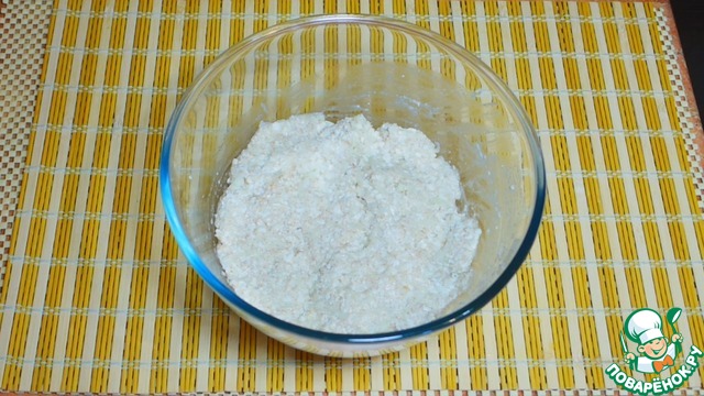 Творог, яйцо, сахар, разрыхлитель и овсяную муку хорошенько перемешать.
