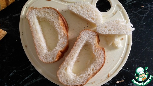 Из ломтиков хлеба вырезаем «окошки» в середине.