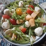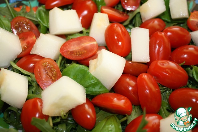 Итак, нам понадобится дыня, помидорки и моцарелла.