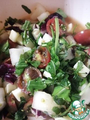 Смешать все ингредиенты и полить заправкой.