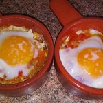 Отправляем их в духовку, разогретую до 180 градусов на 4-5 минут, чтобы схватился только белок, а желток остался жидким.