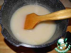 Влить 500 мл. бульона в котором варились тефтели, и варить, хорошо перемешивая, до загустения. Тщательно размять все комочки!