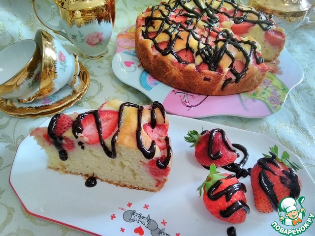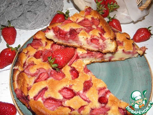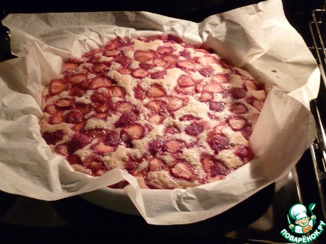 А клубничка на пироге как свежая, будто и в духовке не пеклась - чудеса!