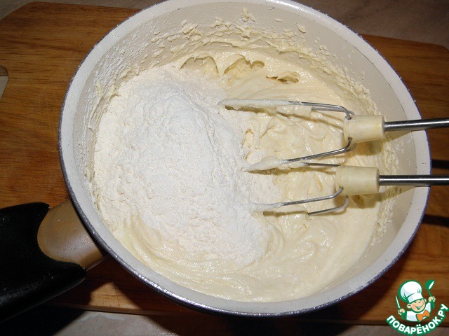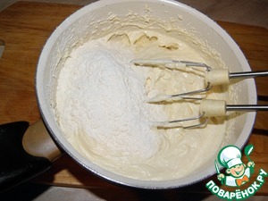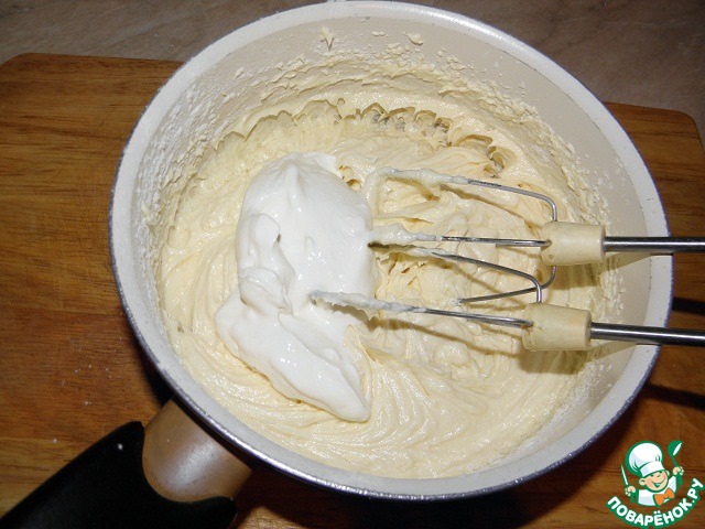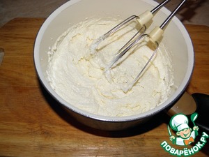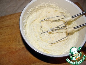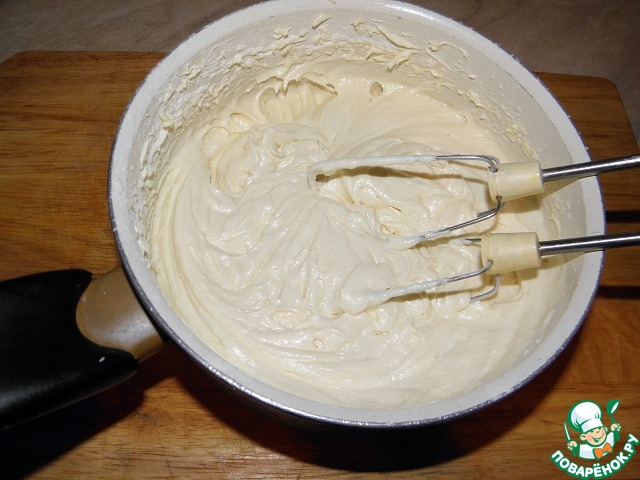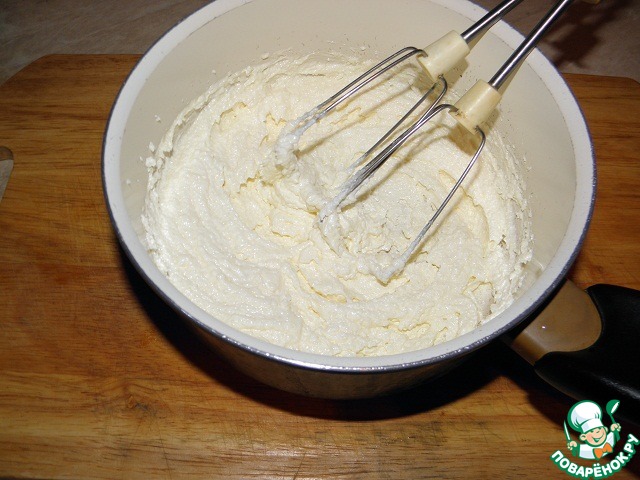Хорошо взбить массу, чтобы получился пышный светлый крем.