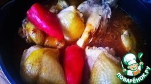 У меня была домашняя курица: половину тушки разрезать на части, обжарить их со всех сторон, необязательно до румяности.