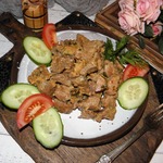 Мясо разобрать на порционные куски. Смешать соль, хмели-сунели, кориандр, черный перец. Обвалять в смеси индейку и обжарить в раскаленном масле в казане с двух сторон в один слой до румяной корочки.