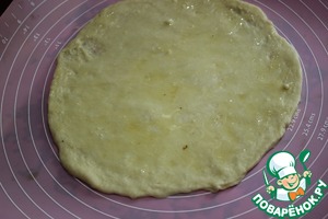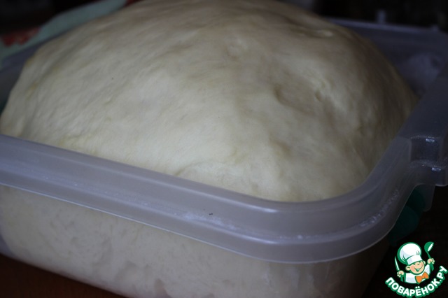 Про тесто в рецепте не сказано ничего, кроме "можно использовать покупное", я остановила свой выбор на дрожжевом тесте. Тесто можете использовать свое, а можете и опробовать мой вариант.