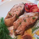 Горячую рыбку выложить на блюдо, посыпать зеленью укропчика... аромат удивительный!