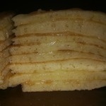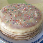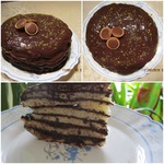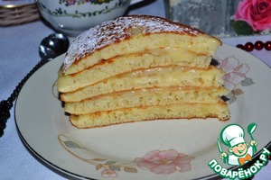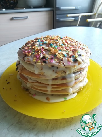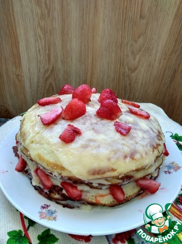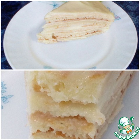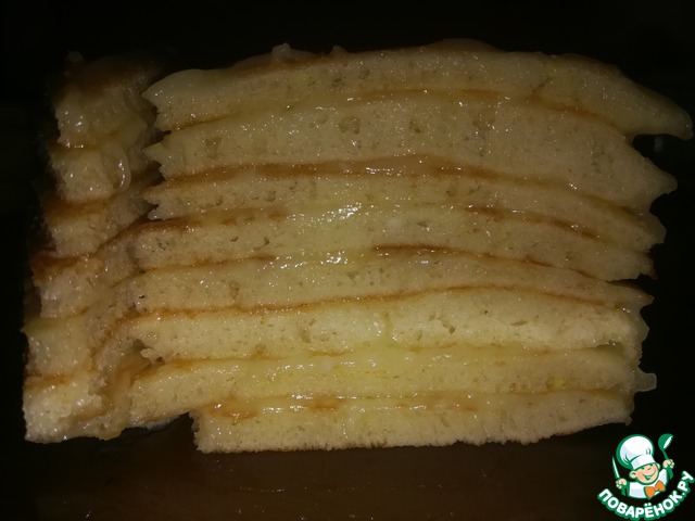 Из полученного количества теста у меня получилось 5 коржей и ещё маленький оладушек, который быстренько утащила дочка.