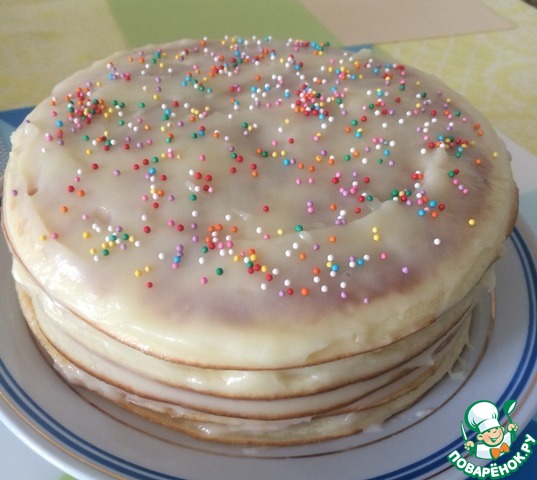 Количество коржей может отличаться из-за диаметра сковороды и объёма ковша, которым вы будете наливать тесто. -