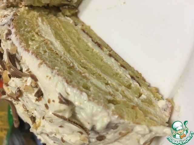 Не ждала когда крем остынет, сразу намазала и собрала тортик.
