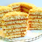 Класть коржи друг на друга пузырчатой стороной (с дырочками) вверх. Крем будет просачиваться в «пузырики» и торт получится нежным. Надеюсь, что всё понятно объяснила, поэтому идём дальше.