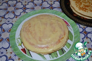 Блинов у меня получилось 6, но меньшего размера в диаметре.