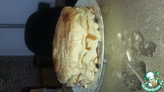 Крем вот только сделала свой любимый, сметанный со сгущенкой, добавила резаный чернослив и грецкие орешки. В следующий раз обязательно попробую оригинальный рецепт крема, мне кажется что с ним еще вкуснее!