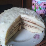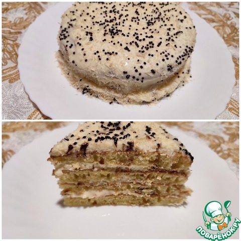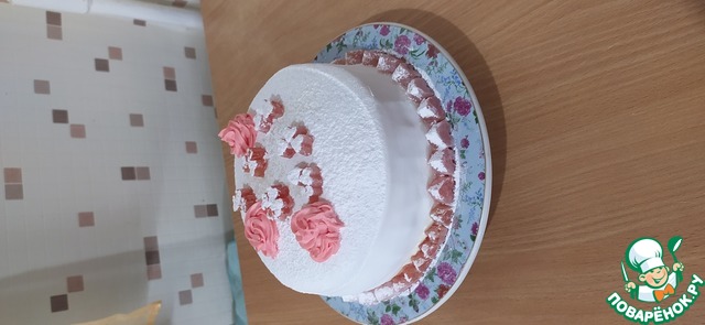 Верхний корж я кремом не смазываю, а посыпаю сахарной пудрой. Почему, спросите вы? Отвечаю: если верхний корж смазывается кремом, то далее он должен быть чем-то украшен. А так как тортик дежурный, то ничего, кроме сахарной пудры в этот день дома не оказывается... почему-то! Ну а вы, можете украсить торт на своё усмотрение, как вам больше нравится! -