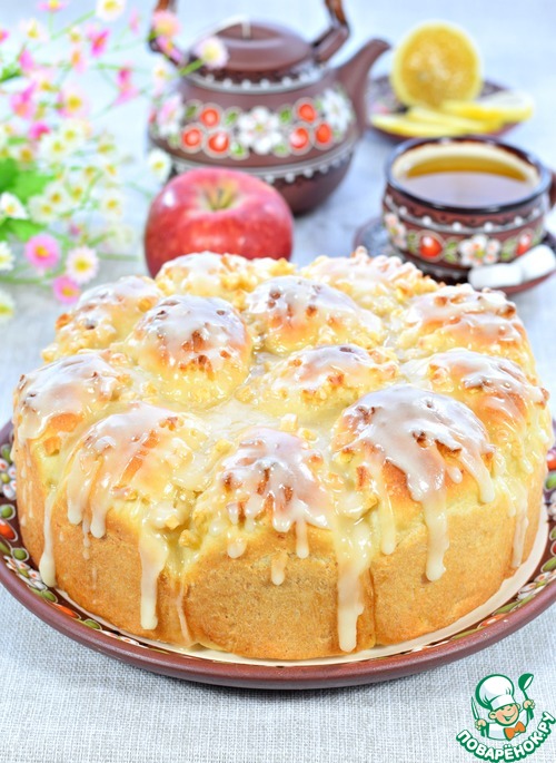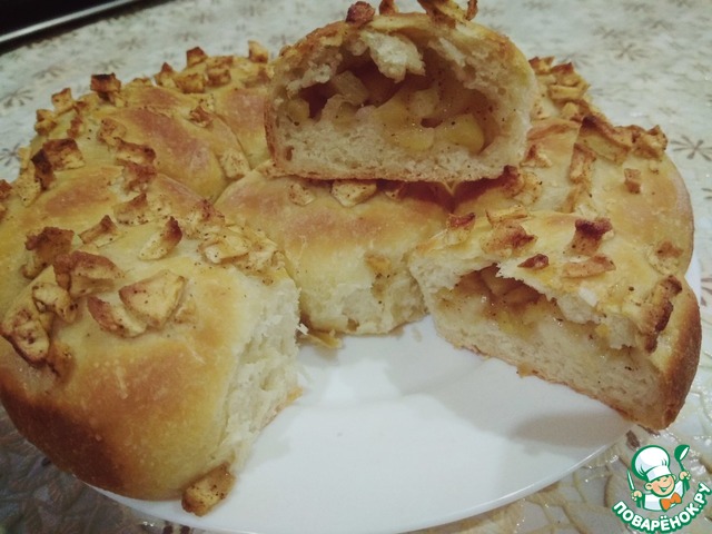 Разборный дрожжевой пирог с начинкой из яблок. Прост в приготовлении, понятен и знаком по вкусовым ощущениям, красив и аппетитен. Достойно будет выглядеть на праздничном столе и порадует ваших близких за семейным чаепитием. Доступный, вполне бюджетный и очень вкусный. Заходите, угощайтесь.