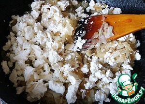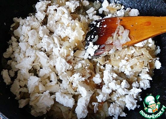 В луково-тимьянную смесь накрошить фету. Прогреть минуту, посолить, поперчить по вкусу.