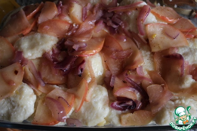 Этот вариант рецепта галушек я придумала сама. Очень надеюсь, что он понравится и Вам тоже. Блюдо очень нежное, ароматное и вкусное. Запеченные творожные галушки под яблочно-луковой заливкой и тягучим сыром. Заходите посмотреть.