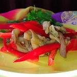 Сладкий болгарский перец очистить от семян (можно взять разного цвета), нарезать тонкой соломкой.