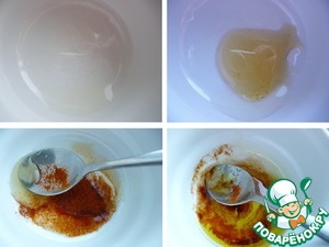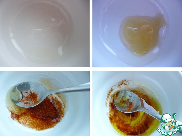 В миске смешать лимонный сок, мед, острый перец, оливковое масло. -