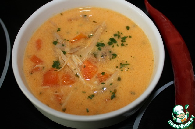 Этакий суп пюре с кусочками курицы и морковки