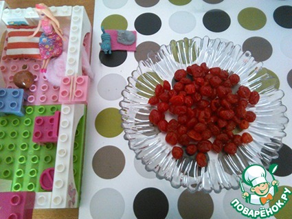Тем временем замочиваем вишню в горячей воде минут на 10.